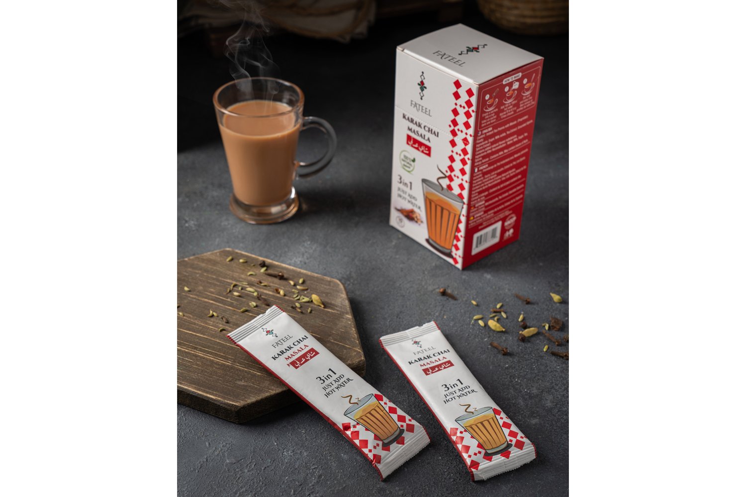 Experience the aromatic flavors of the traditional 0.”karak” (traditionally cooked pot tea) chai from India. These ready-to-stir chai will rejuvenate your senses and energize you.