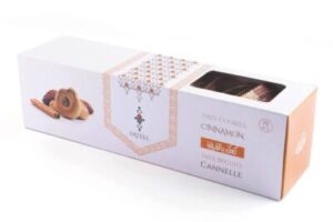 A light, delicate cookie flavoured with cinnamon spice Ingredients: date paste, white flour, vegetable oil, margarine, milk, cinnamon, cinnamon flavour, sugar,