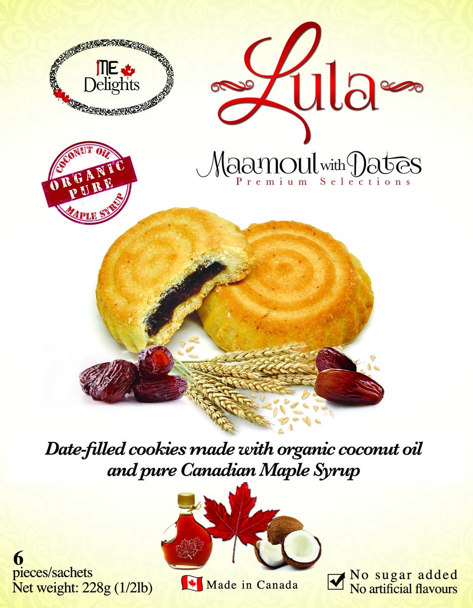Delicious maamoul cookies filled with date paste, 100% organic coconut oil and Canadian maple syrup.