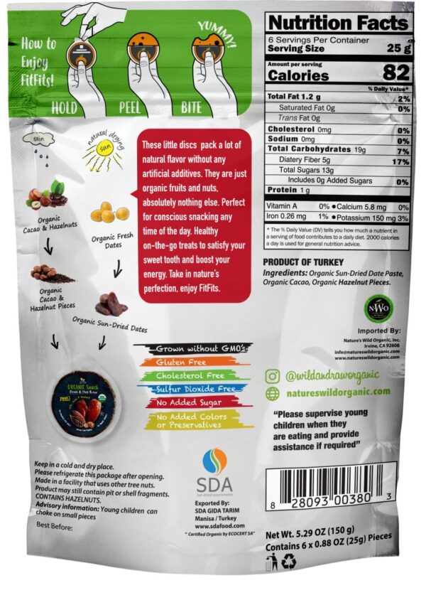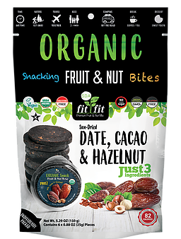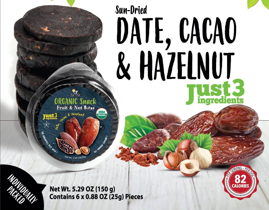 FitFit Organic Bites – Date, Cacao & Hazelnut Organic Fruit & Nut Bites – 150 g