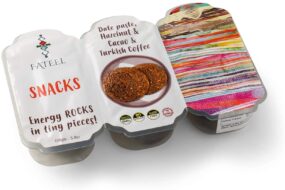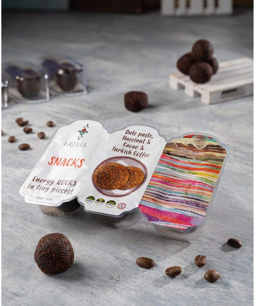 Tired, Exhausted, Hungry – all this and Busy? Try our Fateel Grab & Go energetic Fruit Bars. Try this Hazelnut, Cacao, and Turkish Coffee version of organic date paste bar for that energy boost.