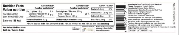 Ingredients: Sun-Dried Date Paste, Cacao, & Hazelnut pieces