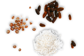 Sun-Dried Date Paste, Hazelnut Pieces, & Coconut.